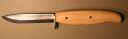 The blade has flat Scandi grind with included angle of 24°and a microbevel with 34°. The handle was made of ash wood and still has to be impregnated.