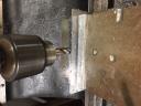 The mill head is set at a 15° angle and the A2 piece is vertical. We made one pass per side and set the feed rate really, really slow. 15 minutes to cut one 6" long side.