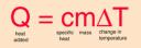 The relationship between heat and temperature change is given by specific heat.