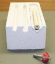 The thickness of the white soft bricks is 3” and the additional grey insulation is 1” thick.