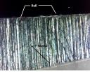 We conducted our tests using our new radius surface impactor at several different locations on the same edge. The results were something on the order of +/- 60. Not good on a scale of 300-350 (the extent of roll we intend to induce) . What is good is our edge tester's ability to point to and describe the extent of these very small edge inconsistencies. We want to do better than +/- 60.  This kind of resolution/repeatability would only be useful in determining the grossest differences in edge structure.  Of course, averaging of the readings would improve the error range from test to test. Statistically speaking, a group of four readings would reduce the error by 1/2.  We would like to minimize the use of and reliance on averaging in these tests. From our electronic days we learn that the way to reduce the need for measurement averaging is to improve the signal to noise ratio. In this case, an uneven roll represents "noise". If we homogenize the roll, our "noise" will be reduced and the ratio improved. It is obvious from these tests that the roll produced by the current impactor design is not homogenous across the impact area. In retrospect, one look at the photos we took previously confirm that. Here is one example: