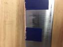The idea here was to attempt to judge if a belt grinder produces grinding temperatures at or above 325° while grinding a knife edge. Our approach here was, in the first stages of the test, to do those things that would lessen temperatures (minimal grinding duration and pressure) and then to increase both pressure and grind times in subsequent stages (assuming the Tempilaq wasn't triggered in the initial stage of the test). The belt grinder is a 1 x 42 Kalamazoo using a slightly used 150 grit Cubitron belt. No cooling means was used during the test other than the natural cooling that occurred between test segments. The knife is a cheap stainless santoku that had been sharpened previously to BESS 155. The bevel angle was approximately 19° and we maintained that angle with our Grepper designed knife rest.