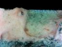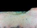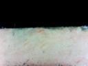 With no sign of triggered Tempilaq we moved on but a little more aggressively.  Since we weren't going to get a well defined line between Tempilaq and grind area we reverted to more standard grinding techniques by moving the blade slightly left and then back to the right thereby extending grind time and area. Then we took more micro pictures of the grind side and backside.