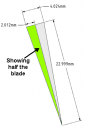 To calculate the taper of the blade all we need to know is the thickness of the blade at the spine and the width from spine to edge.