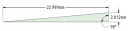 Here is the triangle formed by ½ of the bisected blade.  Why do this?  Because now we have a simple triangle.  We know three things:  The length of two sides (2.012, 22.999) and one angle 90°.  This is cool because we can use SAS (Side Angle Side) calculations to get the length of the hypotenuse and from there the interior angles.
